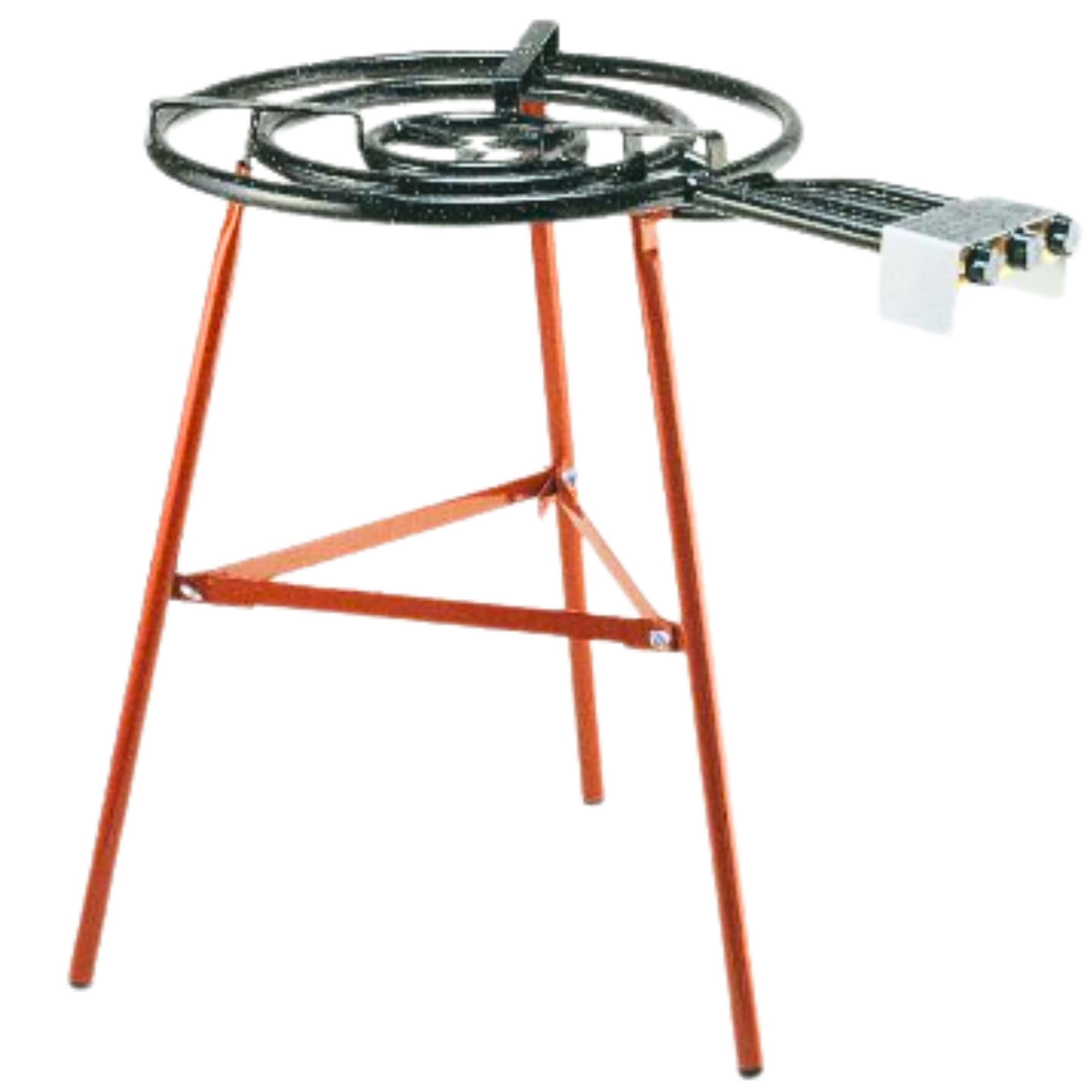 É indicado para uso em exteriores e em conjunto com o tripé pode ser levado diretamente para o local onde se deseja fazer e servir a paella , Sua alimentação é feita através de botijão de gás (para gás natural consulte-nos). Seus aros tem reguladores independentes, podendo serem ligados ou desligados de acordo com a vontade do cliente.
