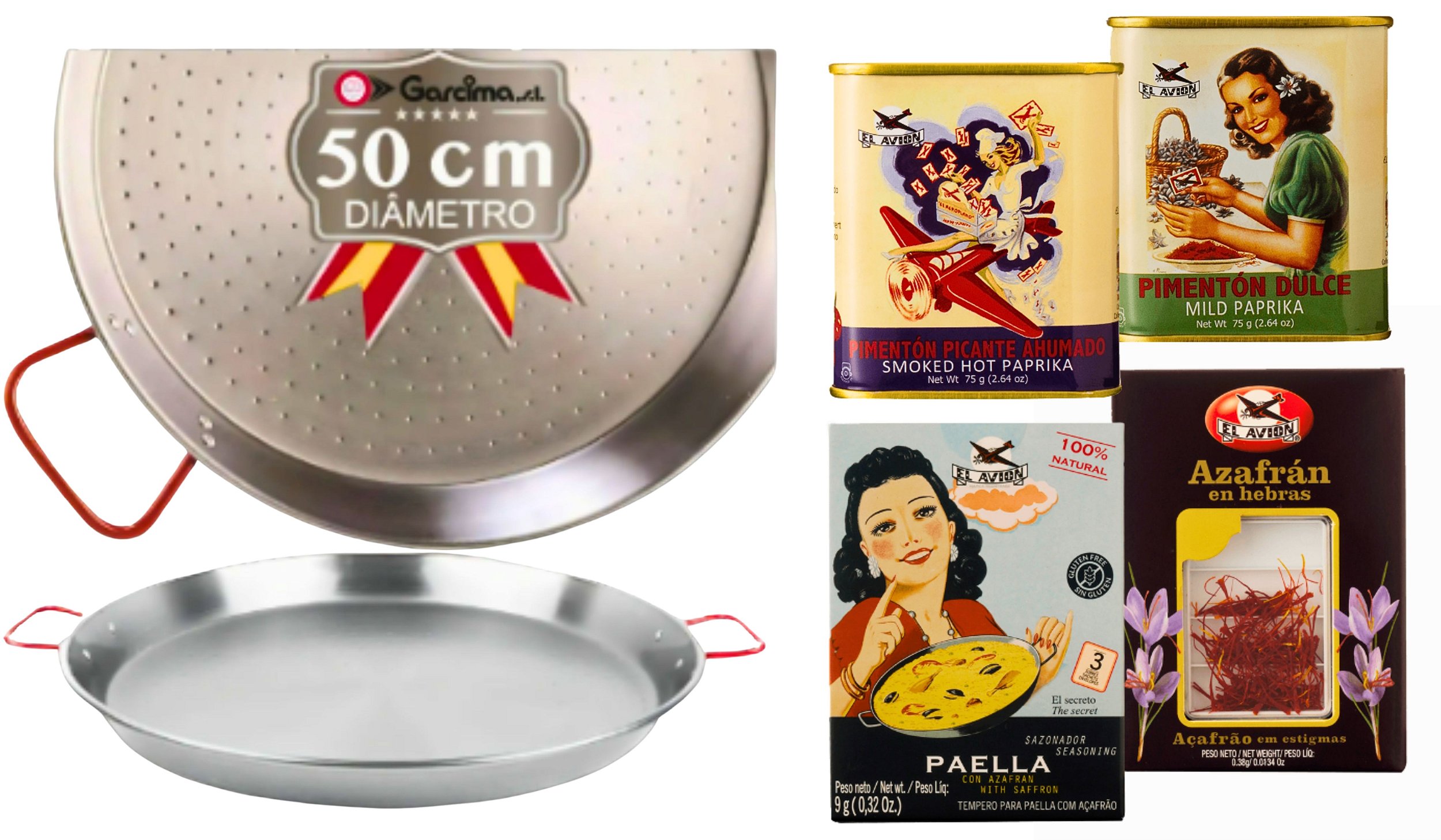 Paellera legítima espanhola da marca Garcima, produzida em aço polido, com alças rebitadas e autêntico design valenciano. Desenvolvida para uso em gás ou lenha. Não utilizar em forno ou micro-ondas. Por ser feito de aço polido, esse produto poderá sofrer oxidação com o tempo.